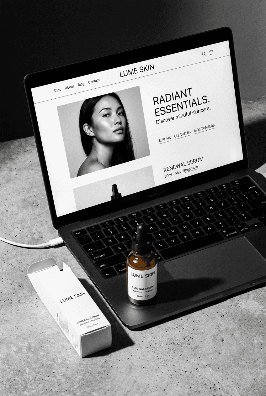 Natural/organic beauty | Green, earth tones, warm beige | Clean clinical white with natural story |