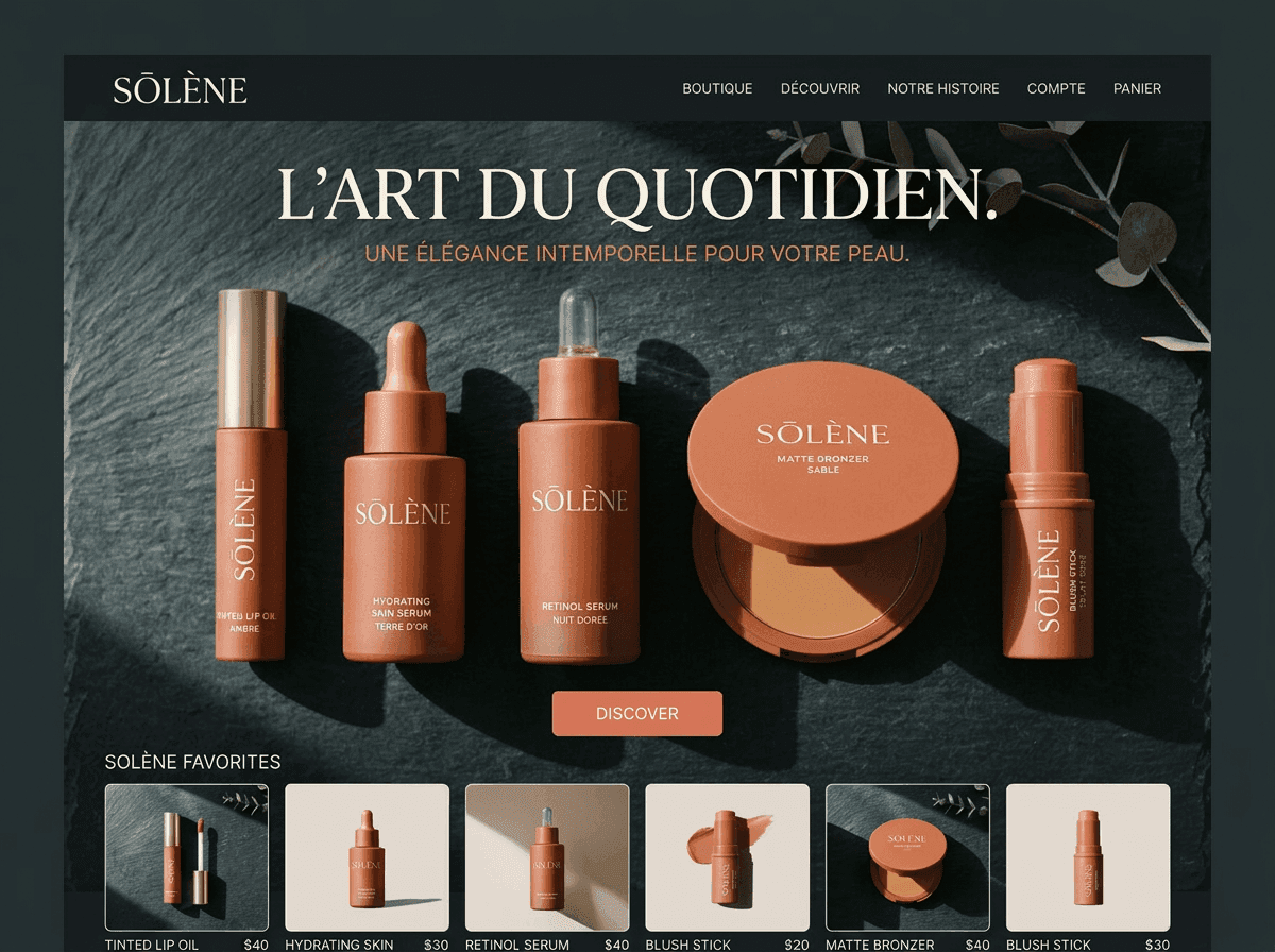She knows what she wants and she stopped explaining herself years ago. Solène was built for the European woman in her thirties who buys less but better. The challenge was creating a premium French cosmetics brand from scratch that felt modern without losing soul. Together we built the full brand identity, a unified terracotta packaging system across five products, a campaign visual world that feels more like fashion editorial than beauty advertising, and a brand site that converts without shouting. Every decision was made with one woman in mind.